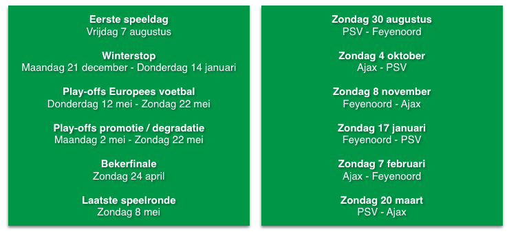 In de nieuwe jaargang van de Eredivisie gaat PSV op jacht naar titelprolongatie, terwijl Ajax eerherstel wil na een tegenvallend seizoen en Feyenoord droomt wederom van de Coolsingel. Ook op andere plekken in de ranglijst belooft het weer nagelbijtend spannend te worden. Buitenkant Voet bereidt je met heuse special voor op een ongetwijfeld legendarisch seizoen.