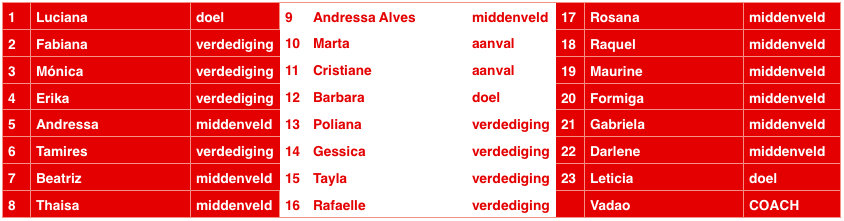 BRAZILIË is zoals ieder toernooi één van de favorieten, maar won het WK voor vrouwen nog nooit. In 2007 waren ze tweede, in 2011 werd Brazilië teleurstellend uitgeschakeld in de kwartfinale. Vorig seizoen werd A Canarinha voor de zesde keer Zuid-Amerikaans kampioen, met 62,5 procent balbezit door het hele toernooi en met 22 gescoorde doelpunten. Het moge duidelijk zijn: bondscoach Vadao houdt van aanvallen en wil echt samba-voetbal laten zien. Bovendien heeft hij van standaard situaties een dodelijk wapen gemaakt.